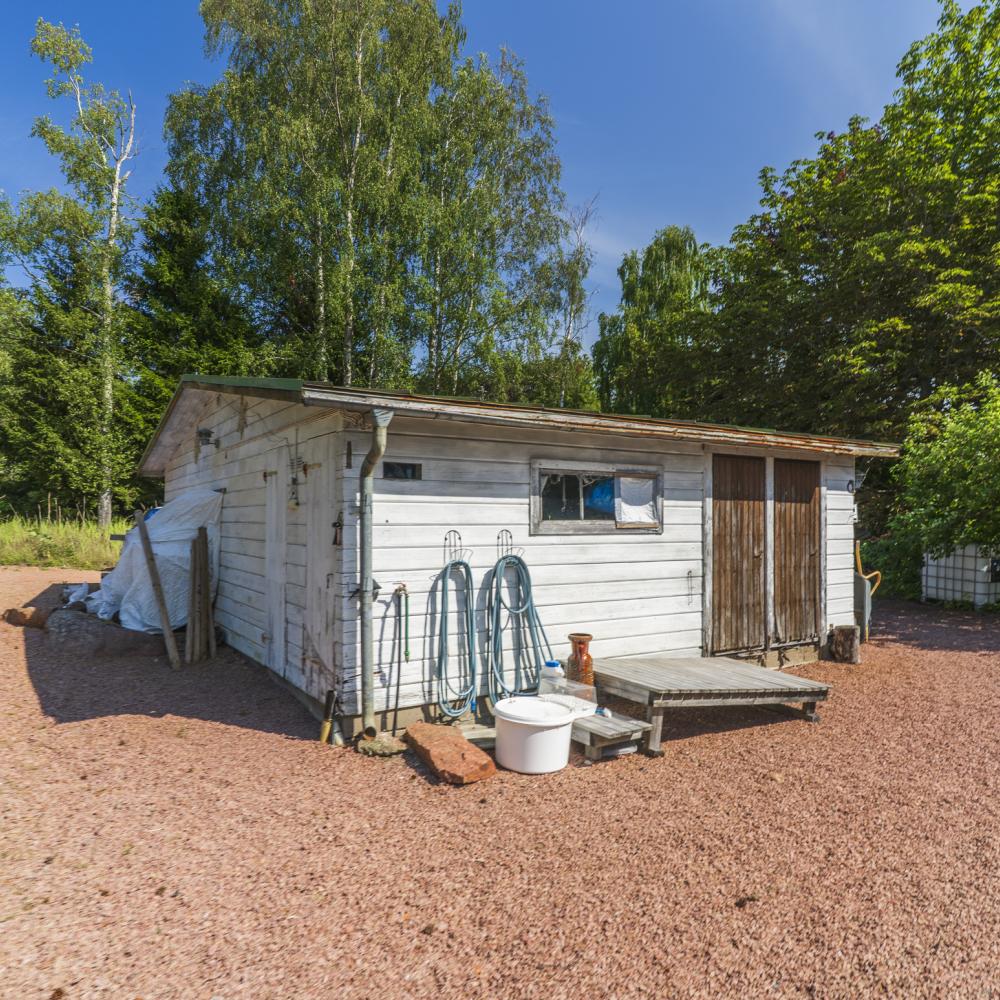 Garaget är en enklare konstruktion, oisolerad inrymmande tvåbilar om man öskar, samt förråd och snickarbods utrymme.