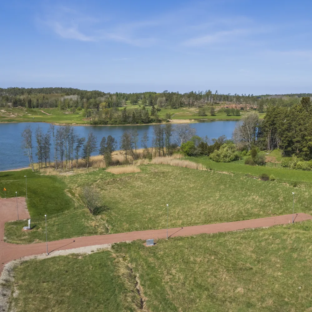 Mot väster har du sjöutsikt samt vyer över den populära och nyligen omgjorda Slottsbanan vid Ålands Golfklubb. Vidare finns inom bekväma avstånd bland annat restauranger, butiker, kommunal service och friluftsliv.
