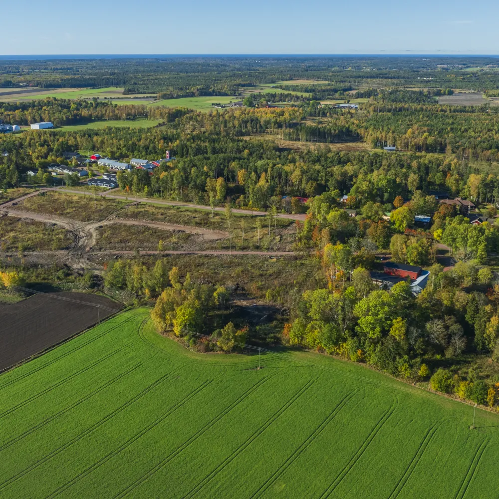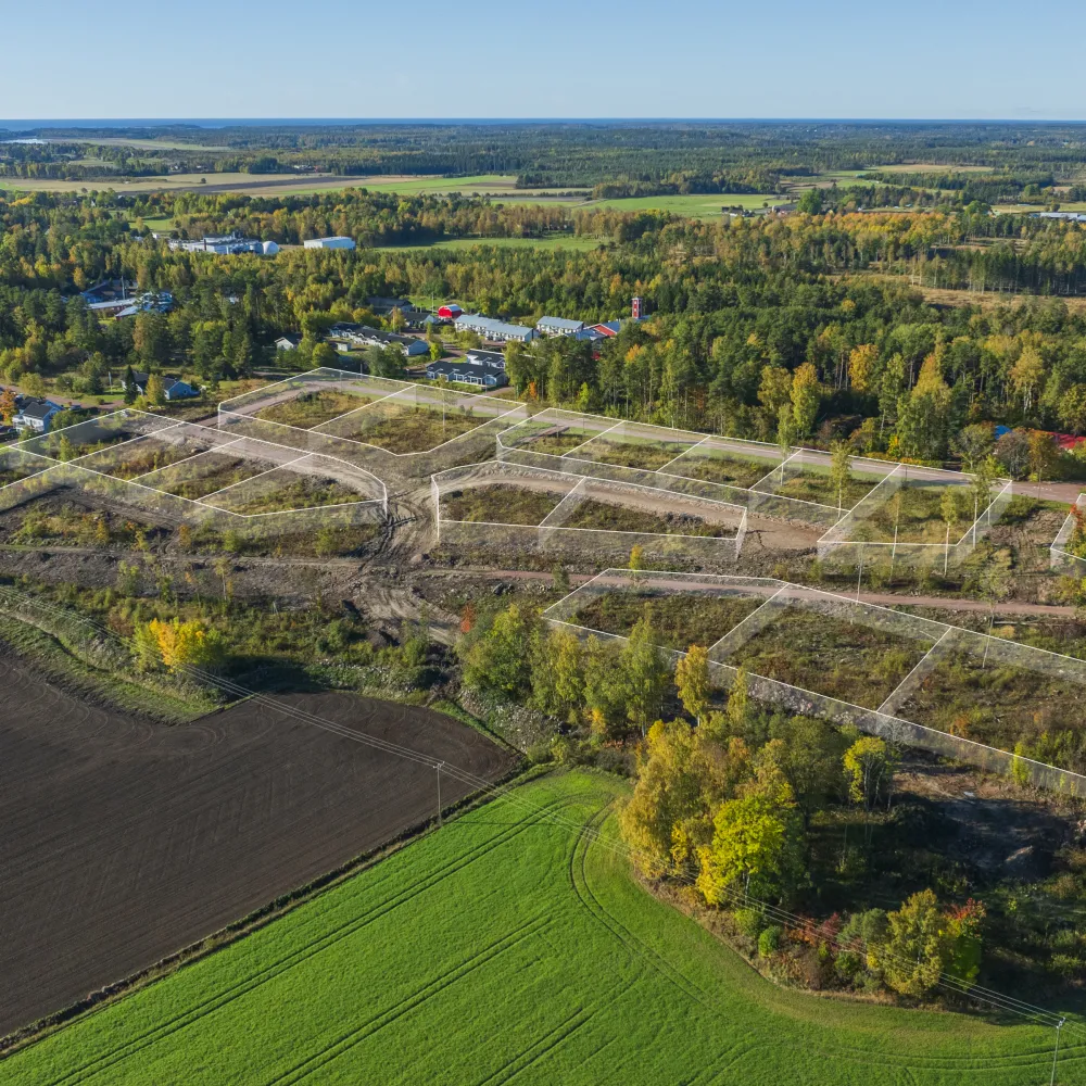 Kommunalt vatten och avlopp samt el och fibernät förbereds fram till tomtgräns.