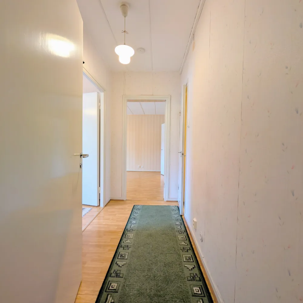 Bostaden erbjuder en rymlig entréhall, ljust vardagsrum i halv öppen planlösning till köket samt ett rymligt sovrum med direkt utgång till en inglasad balkong i österläge – en perfekt plats att njuta av morgonsolen och den rogivande utsikten året om. I sovrummet finns även en klädkammare.