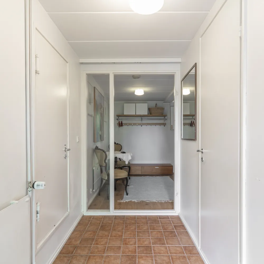 Här bor du i ett lugnt område med närhet till grönska, samtidigt som Mariehamns centrum och service bara är en kort promenad bort. Ett hem där trivsel och funktion går hand i hand.
