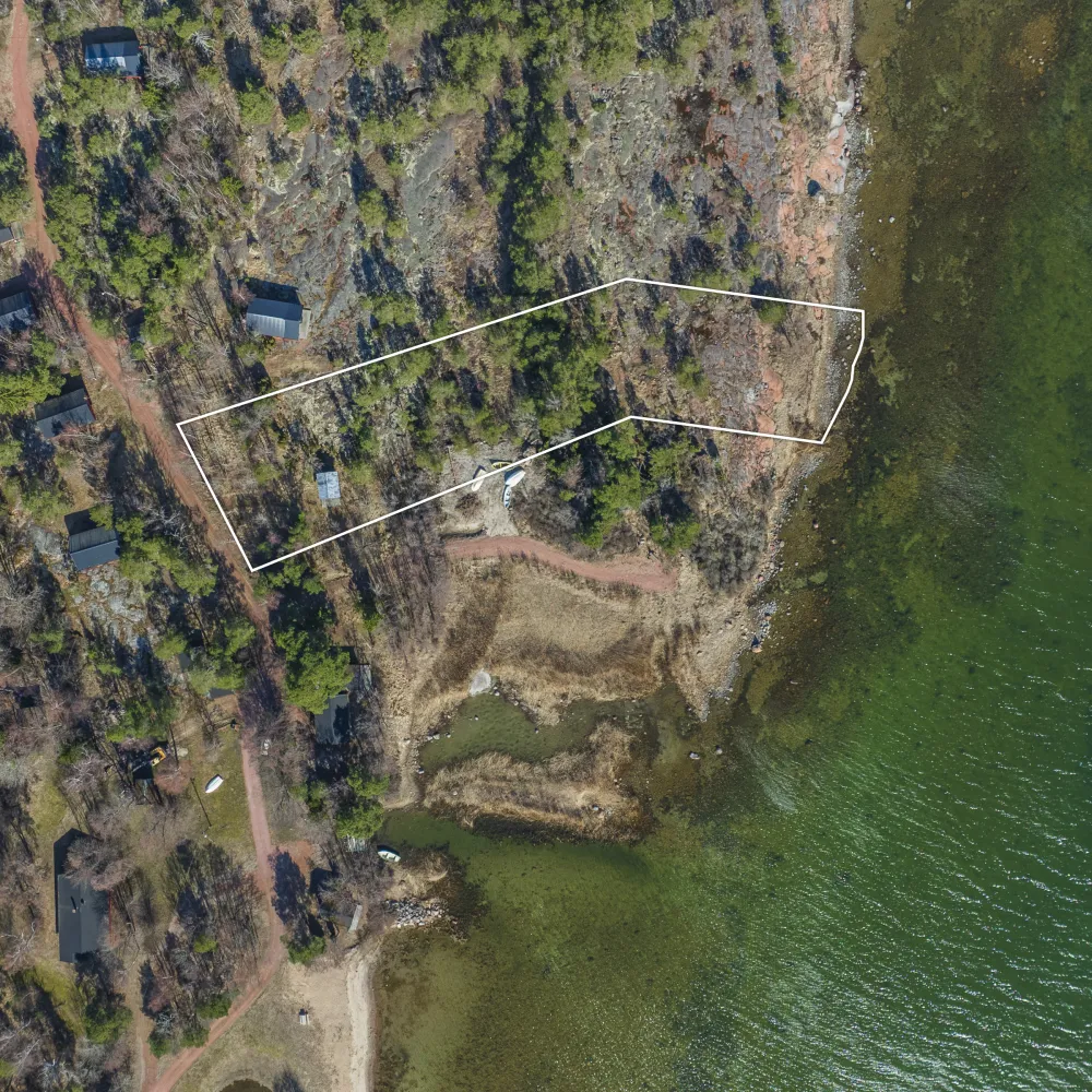 Tomten är ca 3 182 kvm stor med en ca 25 meter bred strandlinje i österläge mot öppet vatten.