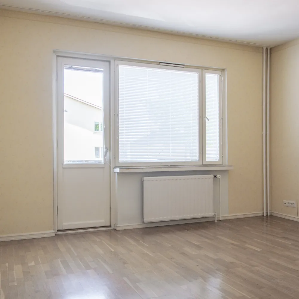 I vardagsrummet finns sovalkov och dörr till vädringsbalkong. Bostadsaktiebolaget genomför för närvarande en balkongrenovering varför balkongen i lägenheten vid marknadsföringens inledande inte får användas. För renoveringsåtgärden upptar bostadsaktiebolaget ett lån, av vilket lägenhetsägare kommer tillskrivas en del.
