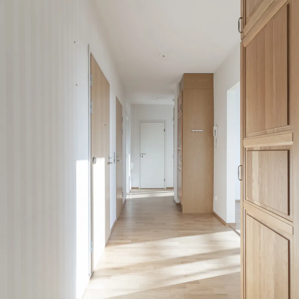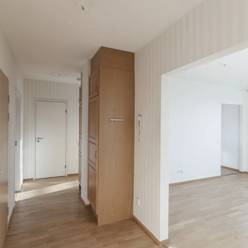 Lägenheten är genomgående försedd med gott om garderober i sovrum och hall.