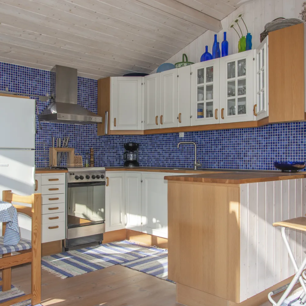 I halvöppen planlösning finns köket som är utrustat med diskho med rinnande vatten, gasspis, stort gaskylskåp/frys samt skåpinredning med gott om förvaring. Köket inrymmer även matplats.
