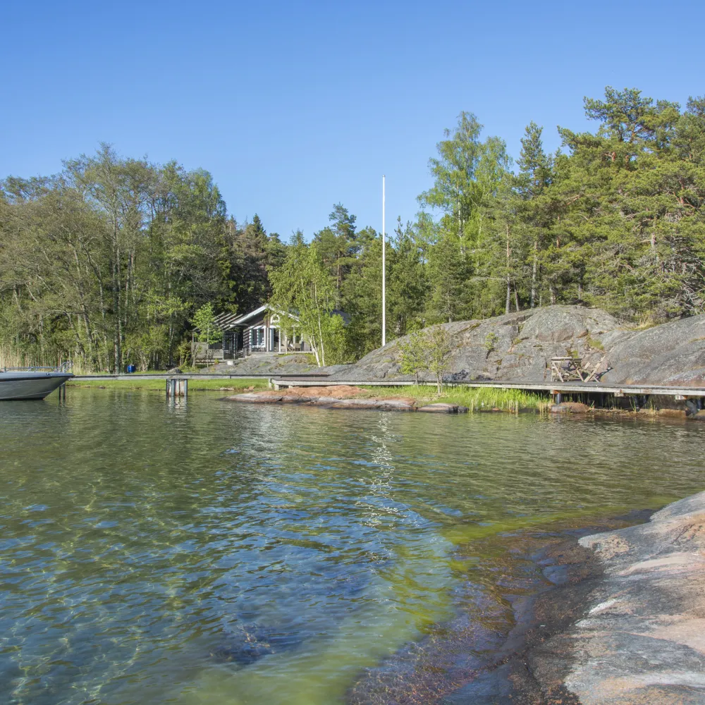 Vid stranden finns brygga med brokista vilket underlättar angöring.