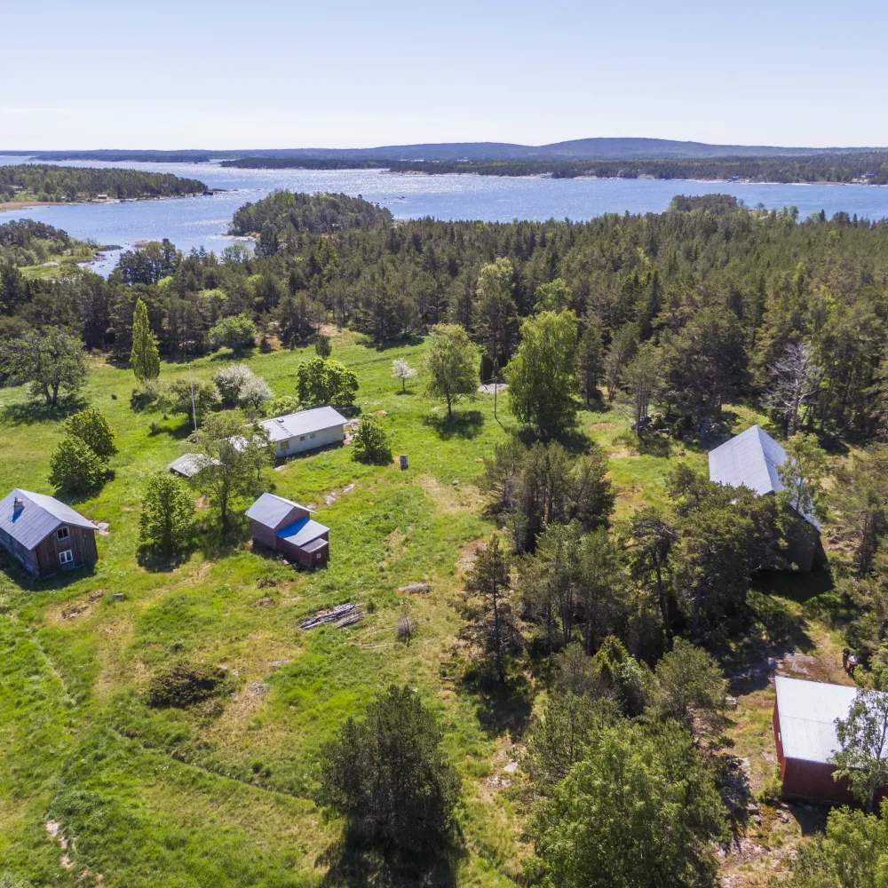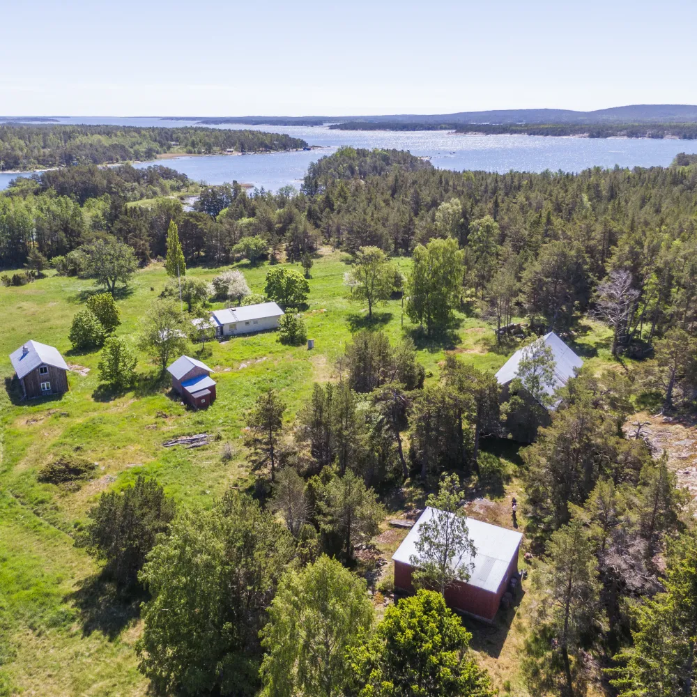 Markområdena runtom byggnaderna består till delar av ängs-/betesmark samt bergbunden mark och gles skog. Strandområdena är till delar bergbundna.