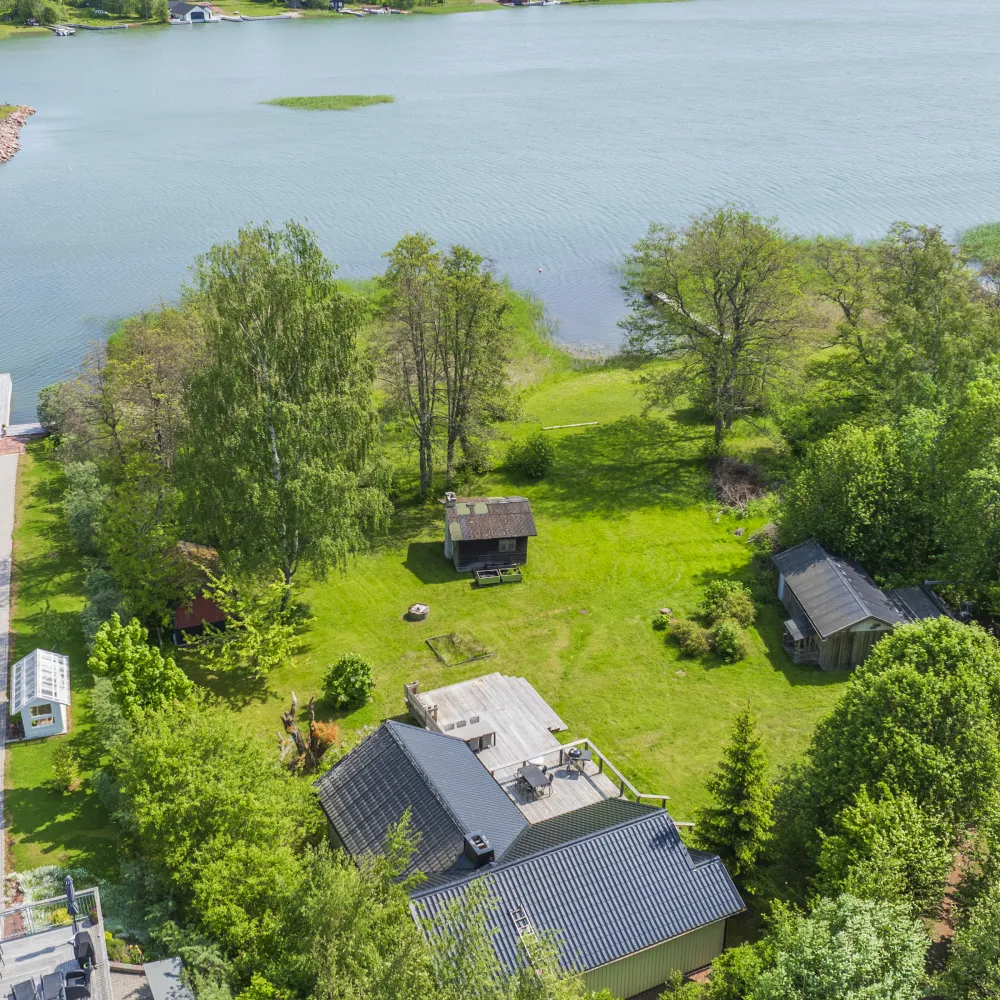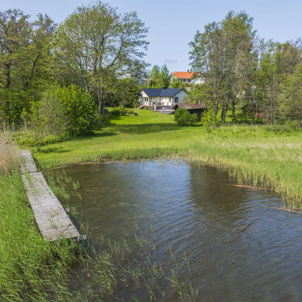 Vid stranden finns anlagd en brygga som lämpar sig utmärkt för bad, kajak, småbåt eller bara avkoppling vid vattnet. Med sin direkta närhet till naturen och vattnet är detta en tomt som verkligen inbjuder till ett rikt friluftsliv – året om. Vidare på tomten finns gammal båthusbyggnad och bastu byggnad. En garage byggnad finns inrett med förråd, plats för bil och vedförråd.