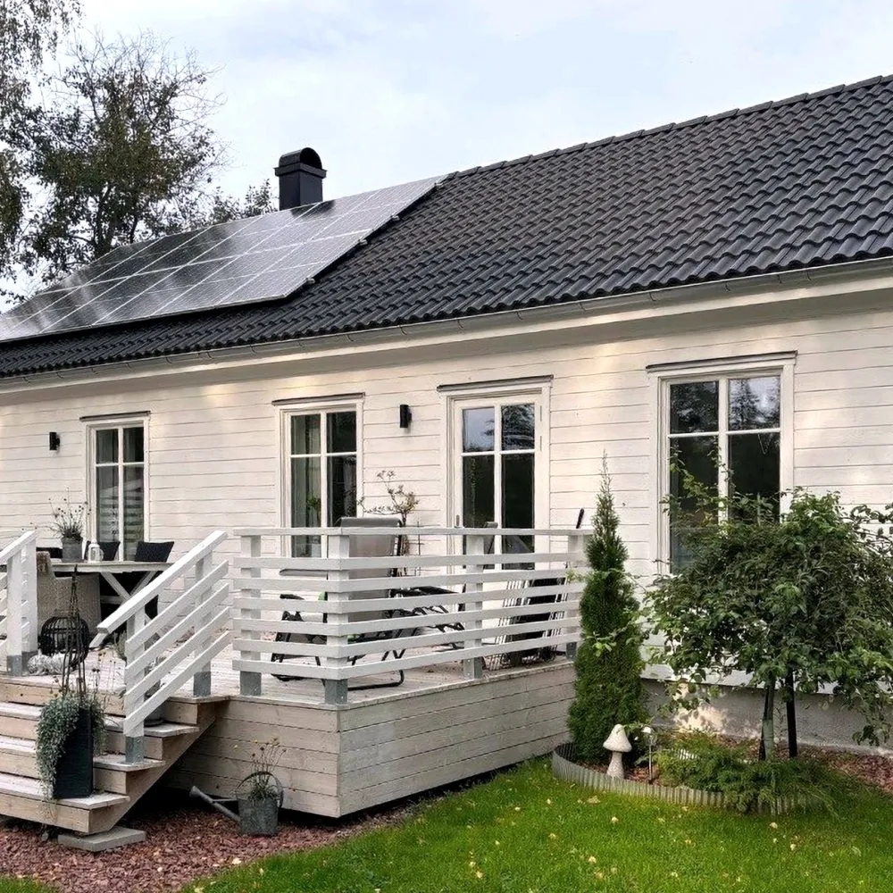 Bostadshuset är uppfört i åländska träelement från Elementbyggen på gjuten, isolerad platta. Fasaderna är klädda med träpanel och yttertaket är lagt med tegel.