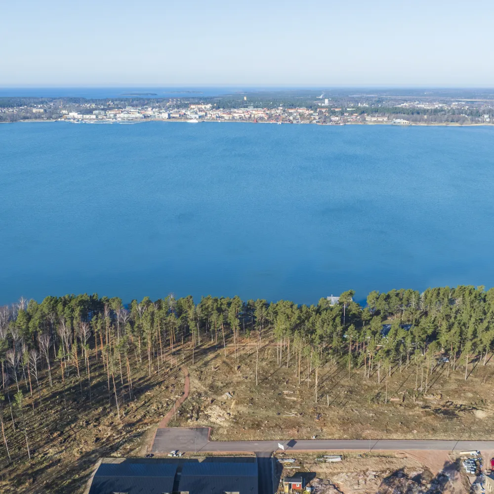 Tomten är belägen i nya och populära Kalmarstrand, ett natur– och strandnära område ett stenkast från stadsgränsen i Mariehamn.