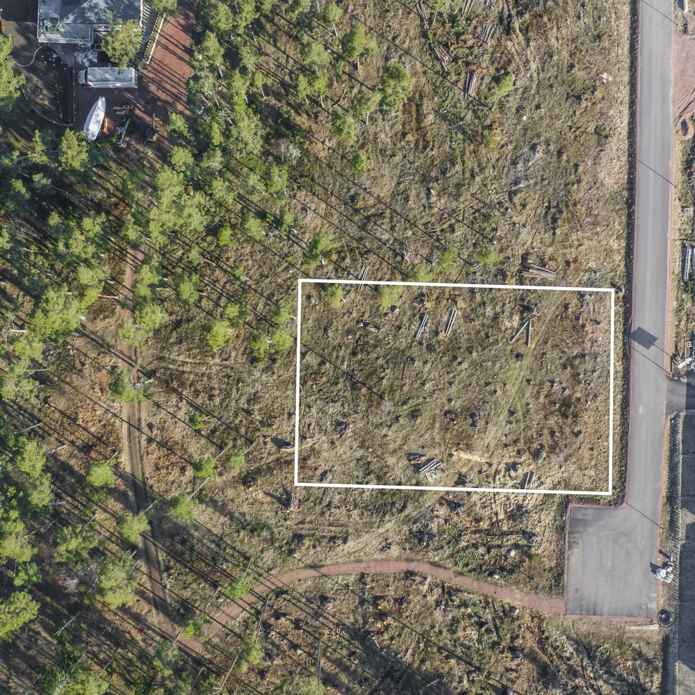 Områdets infrastruktur är färdigt utbyggd med asfalterade, belysta gator samt med färdiga anslutningspunkter för el, vatten, avlopp och fiber invid tomtgränsen. Till sin karaktär är tomten i färdigt avverkat tillstånd. Lantmäteriförrättning är utförd, varvid några lantmäterikostnader inte uppkommer för köpare.
