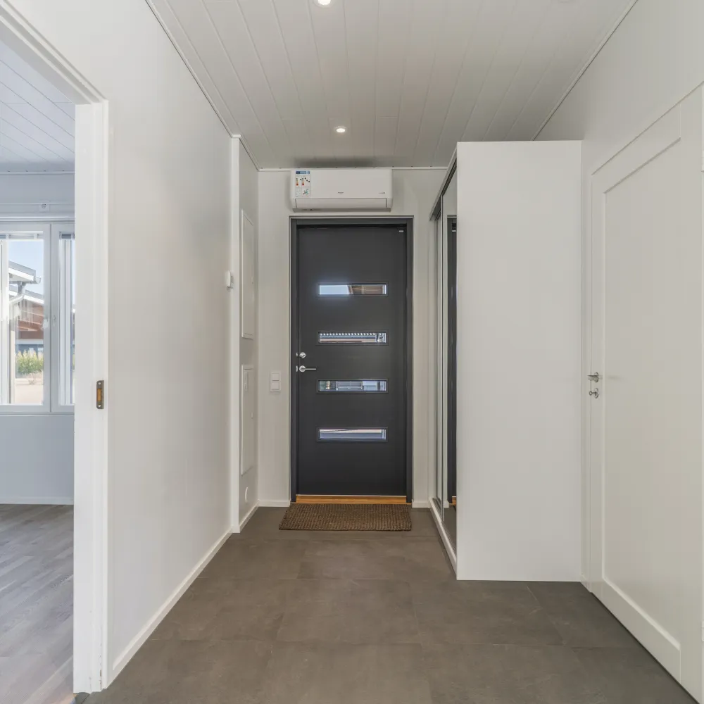 I hallen finns en luftvärmepump med möjlighet till komfortkyla under varmare perioder.