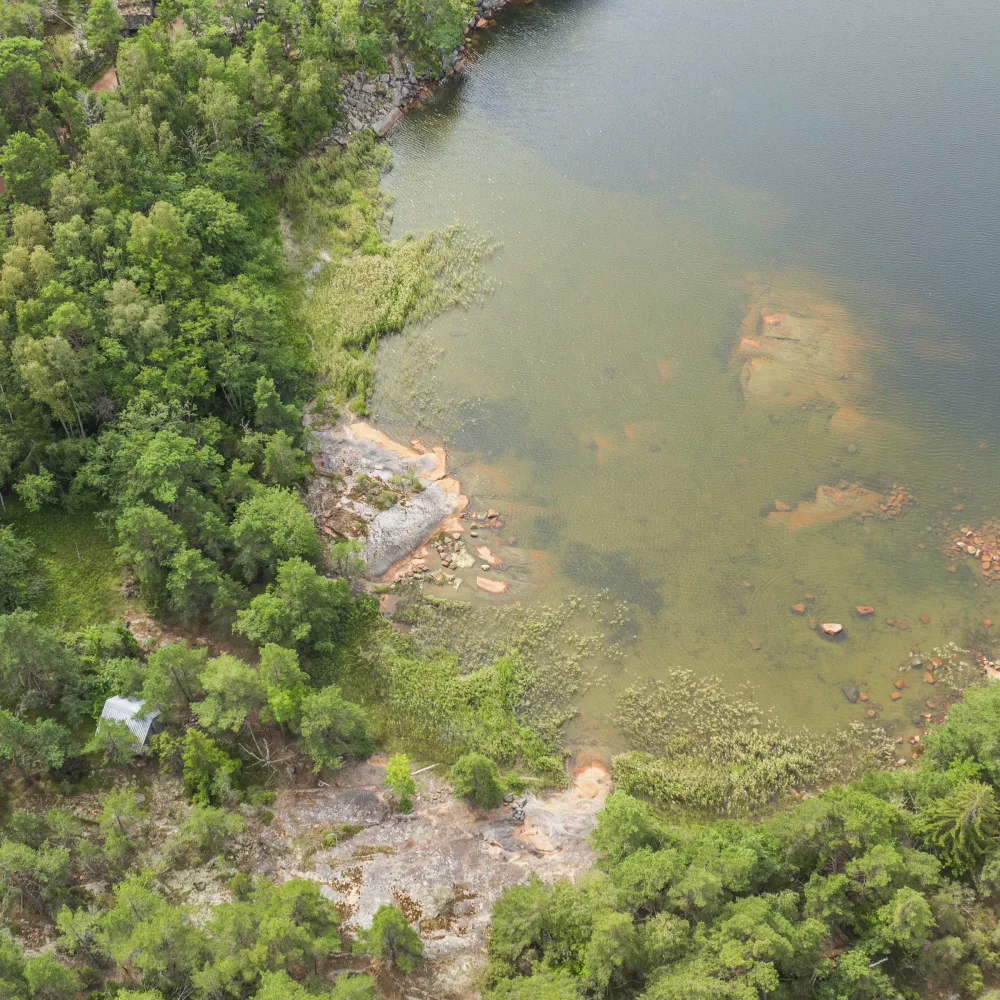 Strandområdet mot Brändöviken erbjuder flacka vistelsevänliga klippor och en mycket vacker utsikt med Norrhavets horisont i fonden. Strandområdet mot den än mer skyddade Fagernäsviken är skogsbevuxet med inslag av klippor vid stranden, vilken i övrigt är mer långgrund och med visst vassbestånd. Strandområdet är bebyggt med äldre ekonomibyggnad.