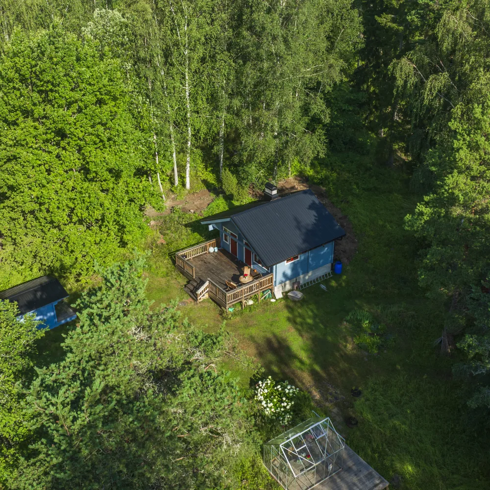 Gäststugan/förrådet, utedasset och den fristående altanen samt växthuset har också tillkommit efter 2020.