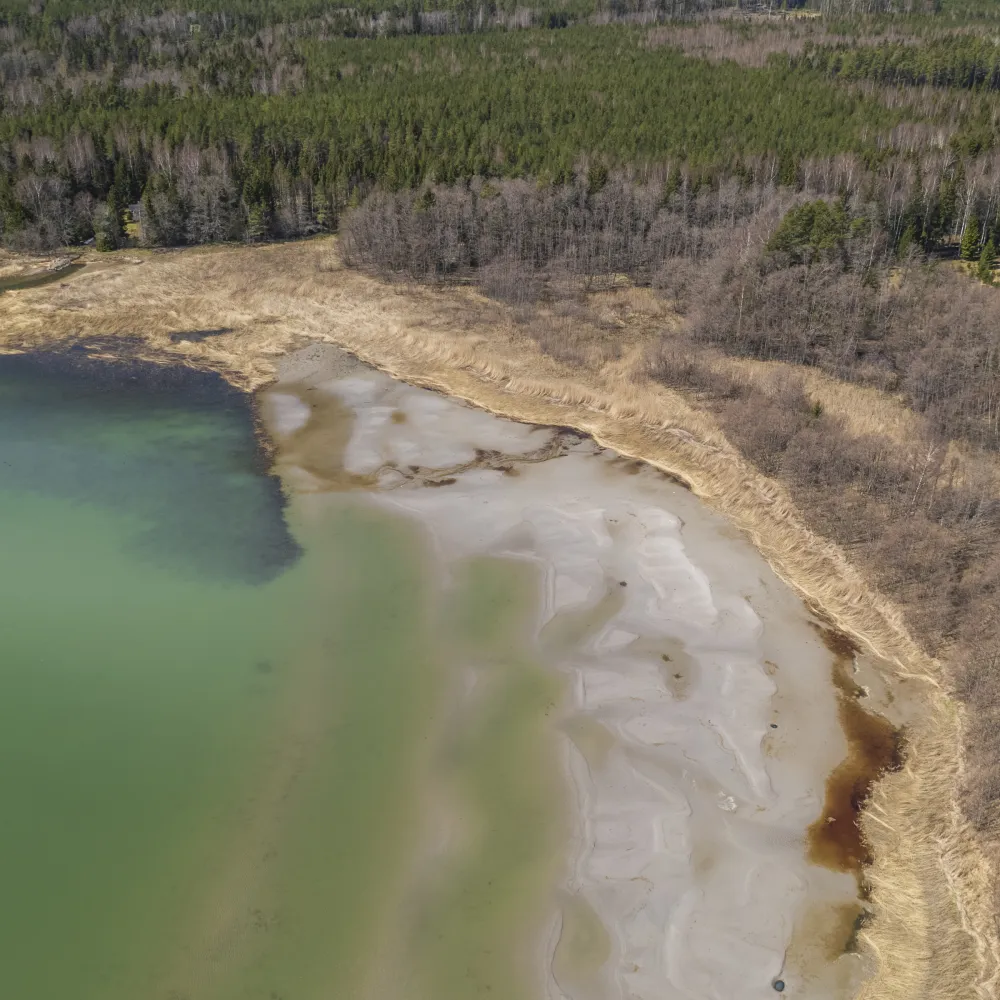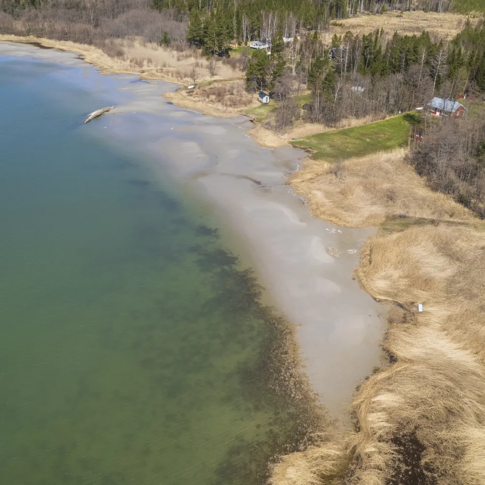 Området mellan tomten och stranden är ett ca 4,5 ha stort samfällt område med ca 600 m strandlinje.