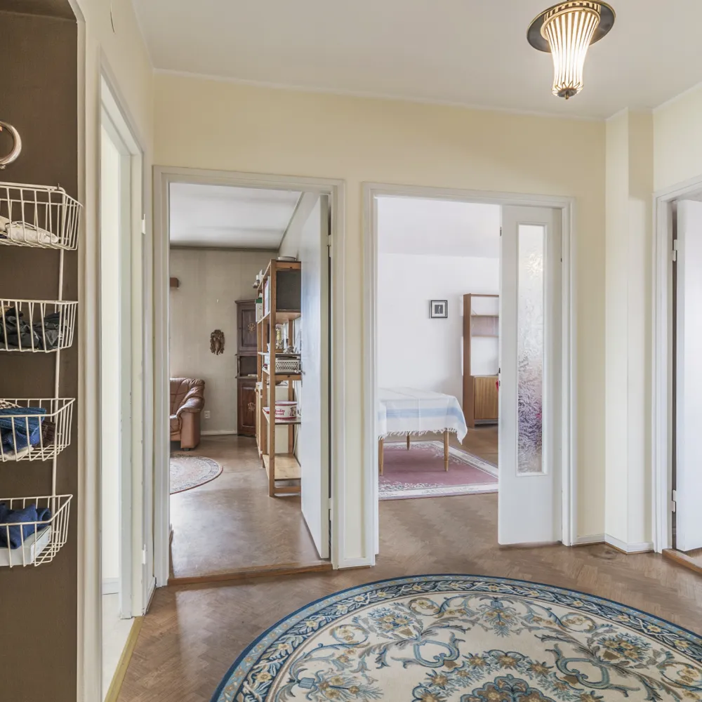Till lägenheten hör vinds– och källarförråd. De gemensamma utrymmena utgörs av bastuavdelning, tvättstuga med torkrum och hobbyrum.