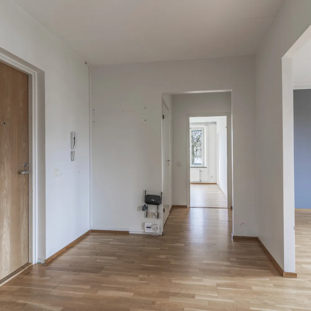 En trivsam trerummare med stora och generösa ytor samt egen balkong mot sydväst, i mycket nära anslutning till strandpromenad och även med bekvämt avstånd till centrum.