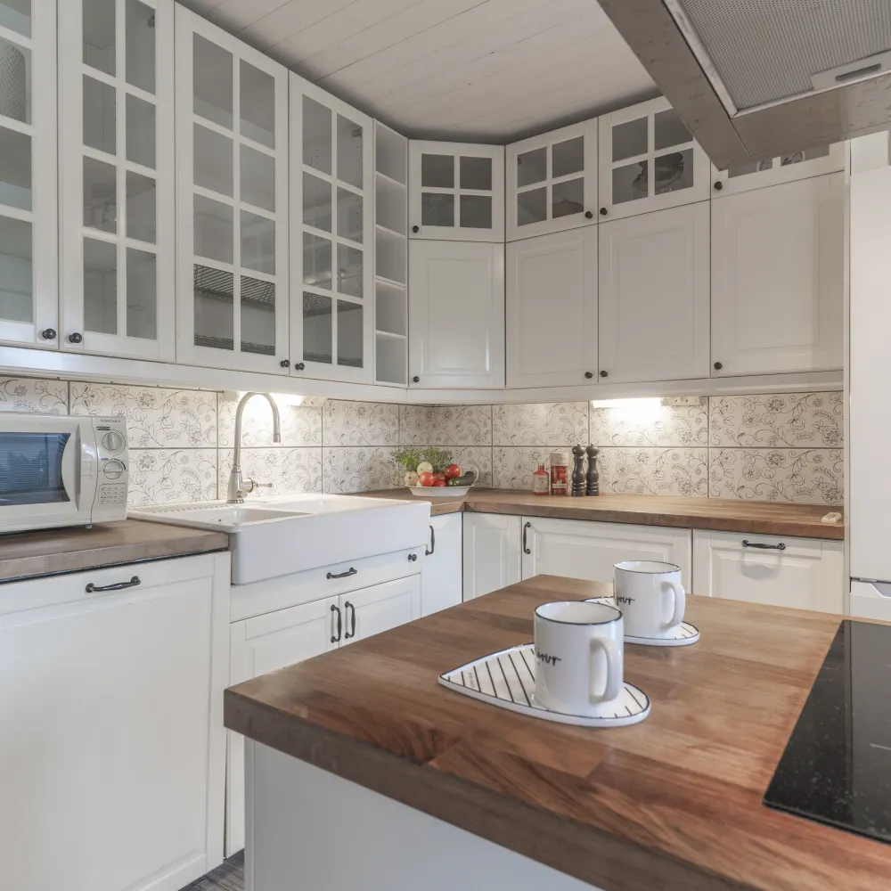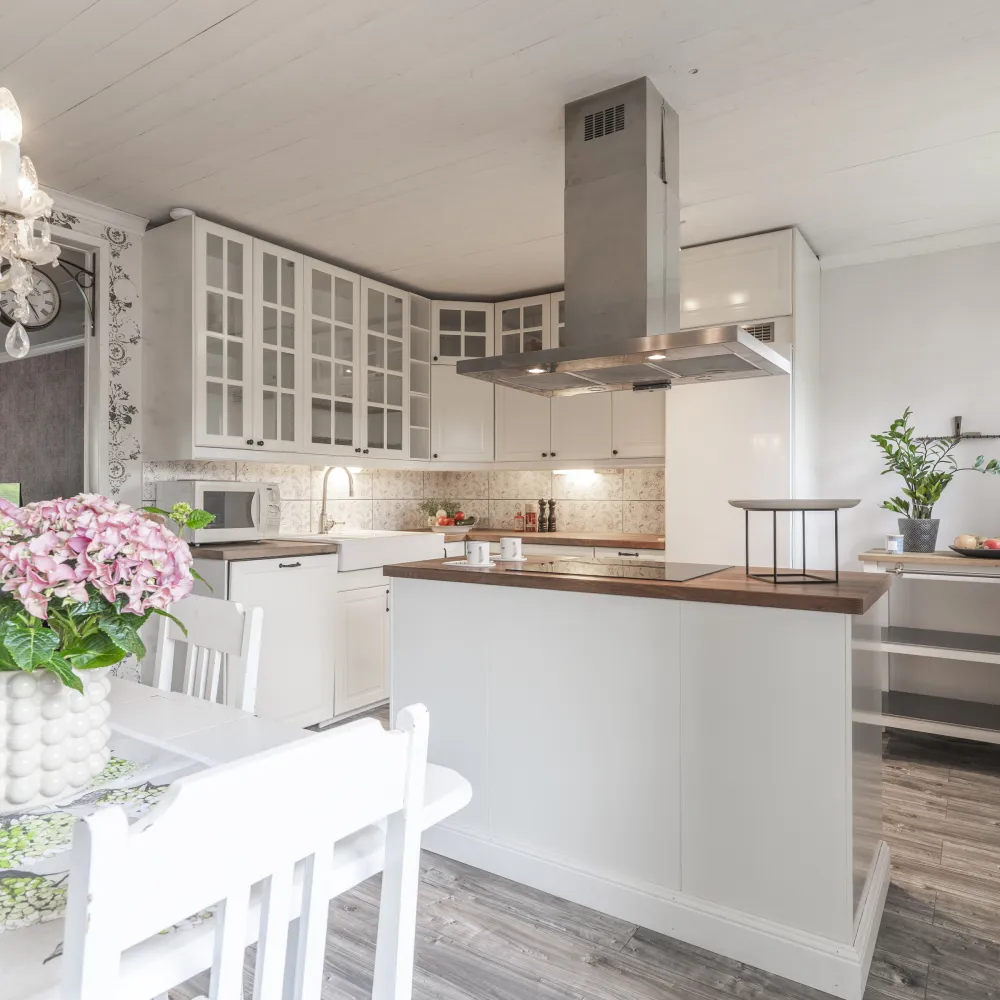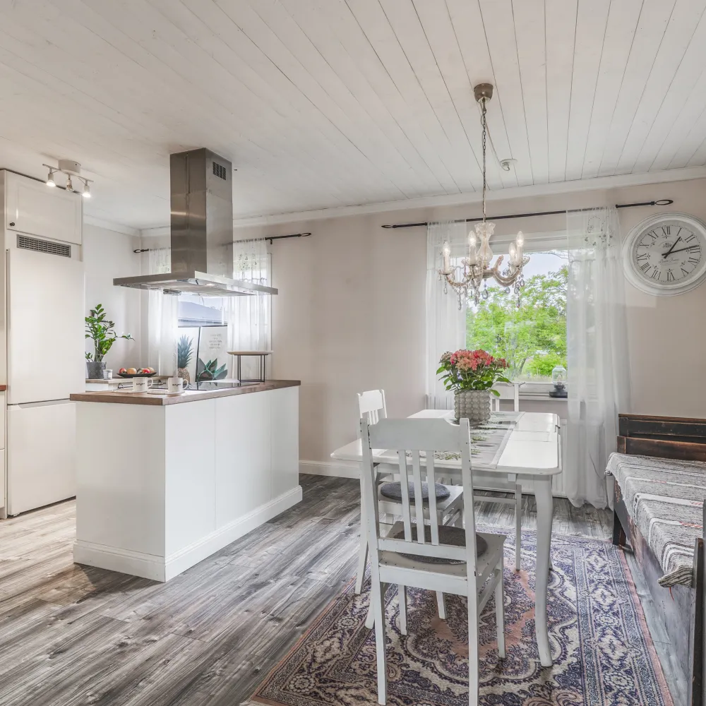 Köket är renoverat ca 2014 med ny inredning och nya vitvaror från Ikea samt nya ytskikt på golv, väggar och tak. Vitvarorna utgörs av induktionshäll, ugn och fläkt vid central köksö samt integrerad diskmaskin och kyl/frys (nya 2025).