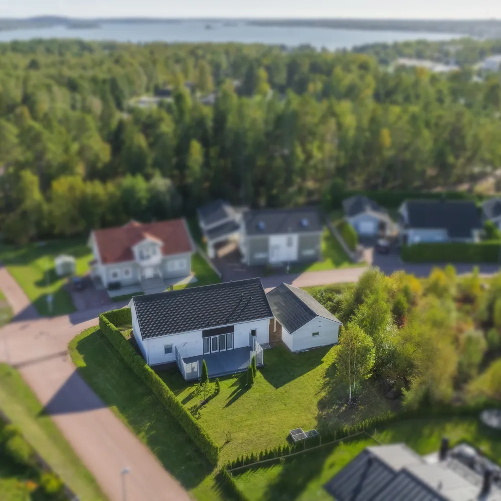 Fastigheten är belägen i populärt och modernt bostadsområde med lekplats och skyddade promenad– och cykelvägar till skola, daghem och idrottsplats.