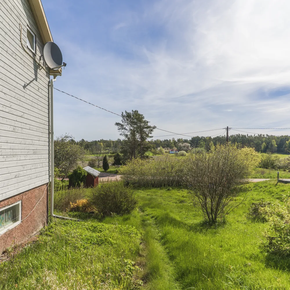 Fastigheten har ett lantligt läge endast belägen ca 3 km från centrala Klemetsby med matbutik, skola, daghem och övrig kommunal service. Avståndet till Mariehamn är ca 28 km. Trädgårdsområdet är lummigt och östersluttande mot vägen och med utsikt över öppet åkerlandskap. Fastigheten omges i övrigt av gräsmatta och enstaka fruktträd.