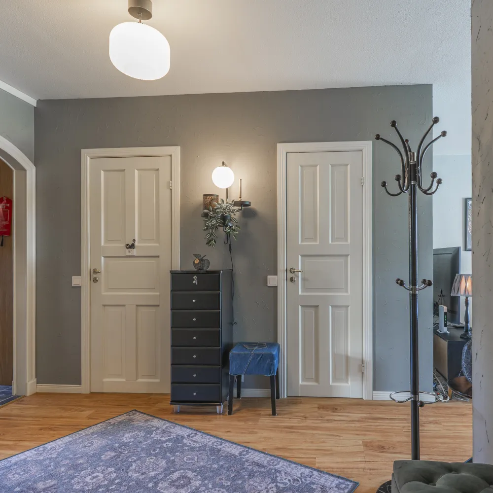 Entrén inrymmer avhängning samt gott om förvaring i större garderob.