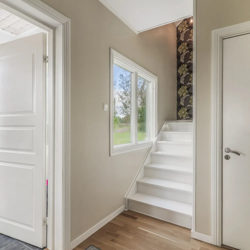 - Samtliga invändiga ytskikt i entréplan och ovanvåning inkl. köksinredning, vitvaror och badrum